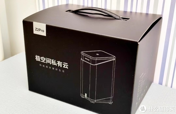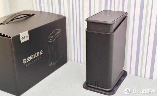 Z2Pro的外观设计简洁而精致,有雪山白和水墨黑两种颜色可选,尺寸为217 × 146.5 × 87.5mm,小巧的机身适合摆放在家中的各种角落。它的前面板采用极简设计,只在下方中心位置设计了一个开关按键和电源指示灯,两侧还有两个盘位的硬盘指示灯,整体设计既美观又实用。